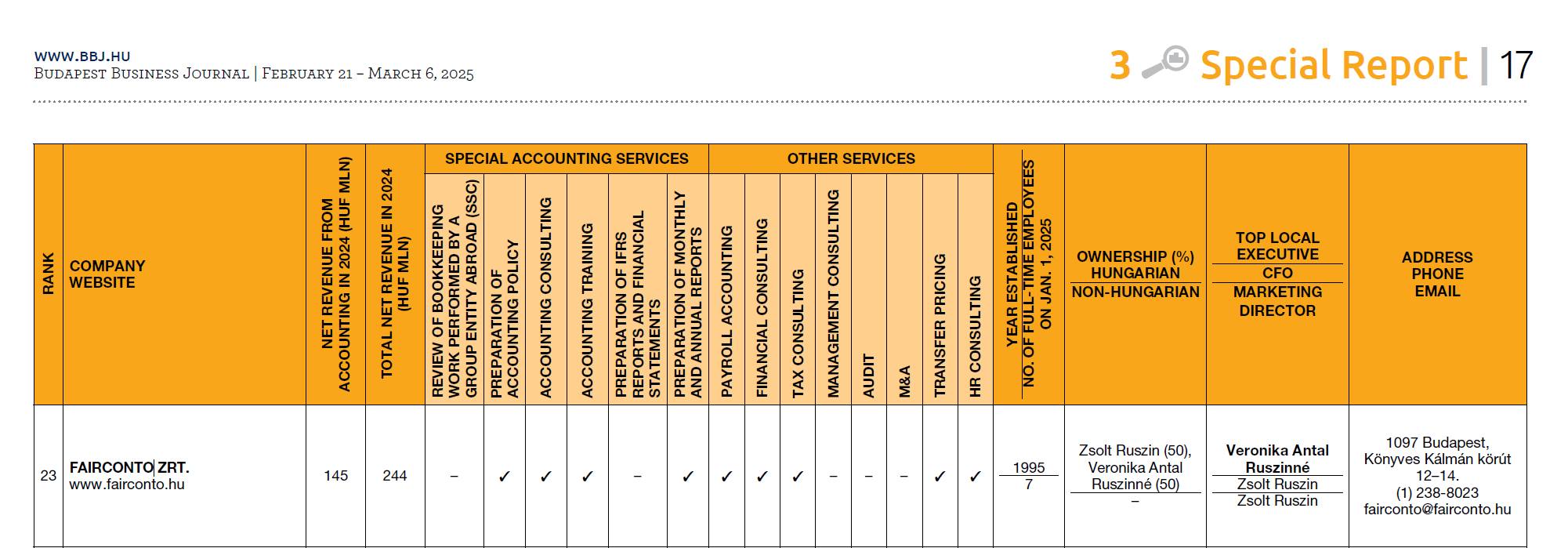 - A BBJ listája alapján és saját felmérések alapján nagyjából két tucat nagy, multinacionális kapcsolatokkal rendelkező könyvelőiroda van Magyarországon, ők többezer munkavállalót foglalkoztatnak.