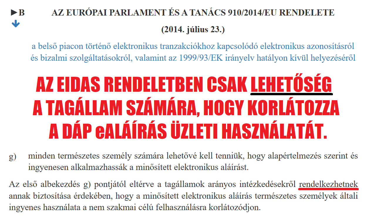 - Magyarország köteles-e korlátozni az EURÓPAI PARLAMENT ÉS A TANÁCS 910/2014/EU RENDELETE 5a. cikk (1) g) pontja alapján a magyar digitális tárca (DÁP) eAláírásának szakmai célú használatát?