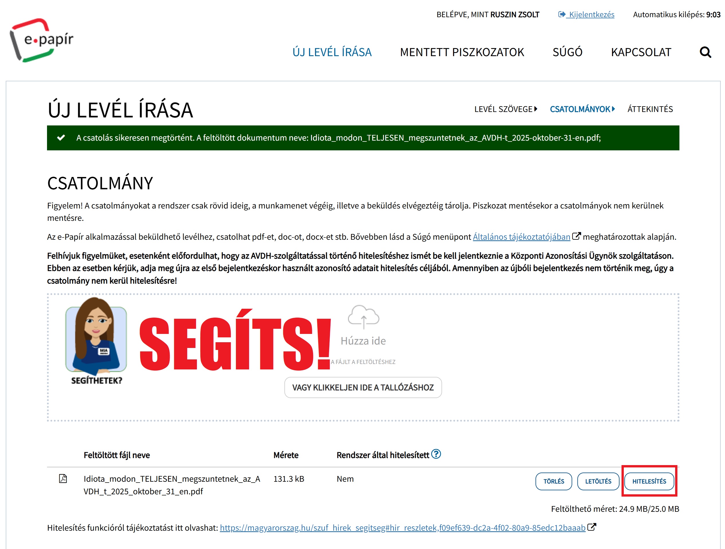 Van olyan ügyintéző, aki szerint ha a mondanivaló egy AVDH-zott csatolmányban van, akkor az érvénytelen, míg más ügyintézők szerint minden (is) érvényes, AVDH nélkül is, hiszen azonosított epapír csatornán küldték.