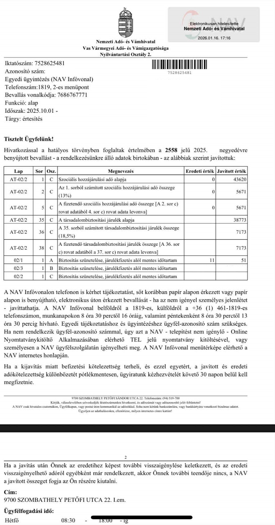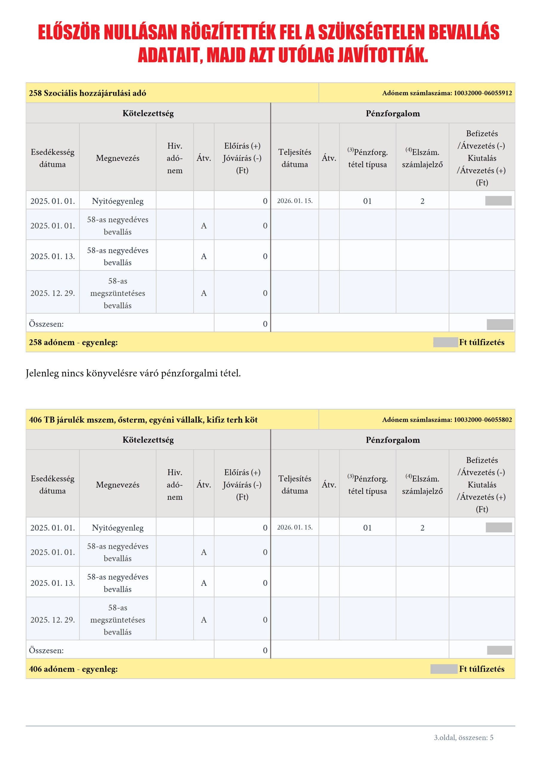 Válaszul benyújtásra került egy nullás járulékbevallás, amit a NAV fel is dolgozott, de Szeifert Szilvia nyomására Némethné követelte, hogy legyen a járulék bevallva, ami szerencsére hibaágon azonnal hibernálásra került, így az adófolyószámlán továbbra is NULLA járulék szerepelt. Szeifert Szilvia azonban beavatkozott a helyzetbe és izomból átírta a bevallást. Egyébként ezen bevallás-felülírásról szóló tájékoztatások jogszabály-ellenes tartalommal kerülnek automatizáltan legyártásra, hiszen nem tartalmazzák a tiltakozásra vonatkozó lehetőséget (Art. vhr. 18.§ (2)).
