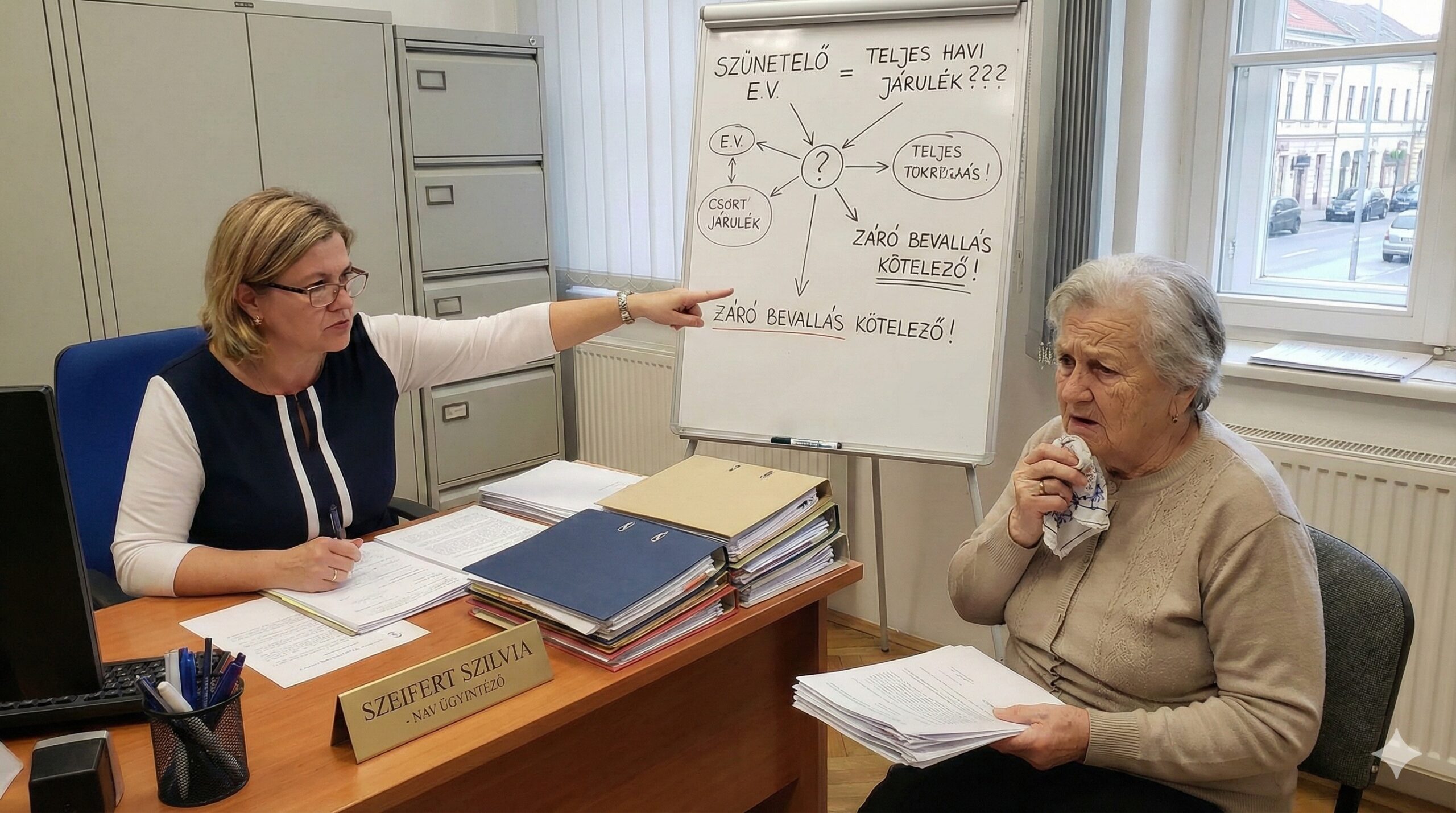 Történetünk szereplője egy fiatal hölgy, nevezzük őt Évinek. Évi – fiatal kora ellenére – szorgalmasan dolgozik, állást vállalt, akár alkalmi munkát végez, mindezt bejelentve, ragaszkodva a törvényességhez.  Évi jól Ismeri és aktívan használja az internetet, ügyfélkapuval rendelkezik és mindent (is) szeretne elektronikusan ügyintézni. Évi egyéni vállalkozást nyitott még 2022-ben, hátha ezen a formában tud érvényesülni, de inkább szüneteltette, mert semmi bevételt nem hozott. Évit azonban a munkáltatója „leépítette”, így kénytelen volt az alkalmi munkák mellett a kormányhivatalhoz fordulni. Még ez előtt megszüntette a szünetelő egyéni vállalkozását. Itt kezdett el bonyolódni a történet…