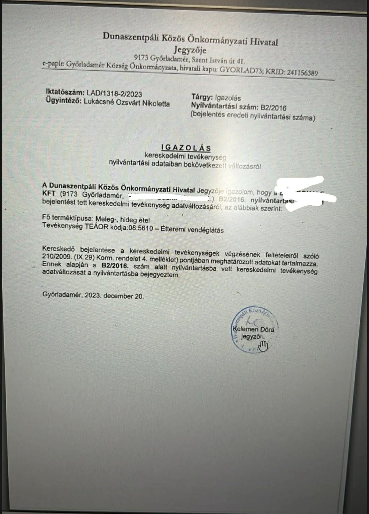 A repire a rendelet „mentes az adó alól” fordulatot alkalmazza. A törvény – bár ezt a NAV tájékoztatás nem tartalmazza – előírja (Air. 98.§ (3)), hogy az adómentességet okirattal vagy más megfelelő módon kell bizonyítani. A mentesség okán meg kellene győződni az éttermi vagy cukrászdai repi adómentességéről. A közhiteles nyilvántartásban étteremként, vagy cukrászdaként való szereplés elegendő bizonyíték, de az erre szolgáló OKNYIR problémás, nem is kicsit. Az OKNYIR egy gagyi portál, az egyes regisztrációknak nincs külön linkje, a keresési eredmény nem nyomtatható, a nyilvántartás nem historikus.